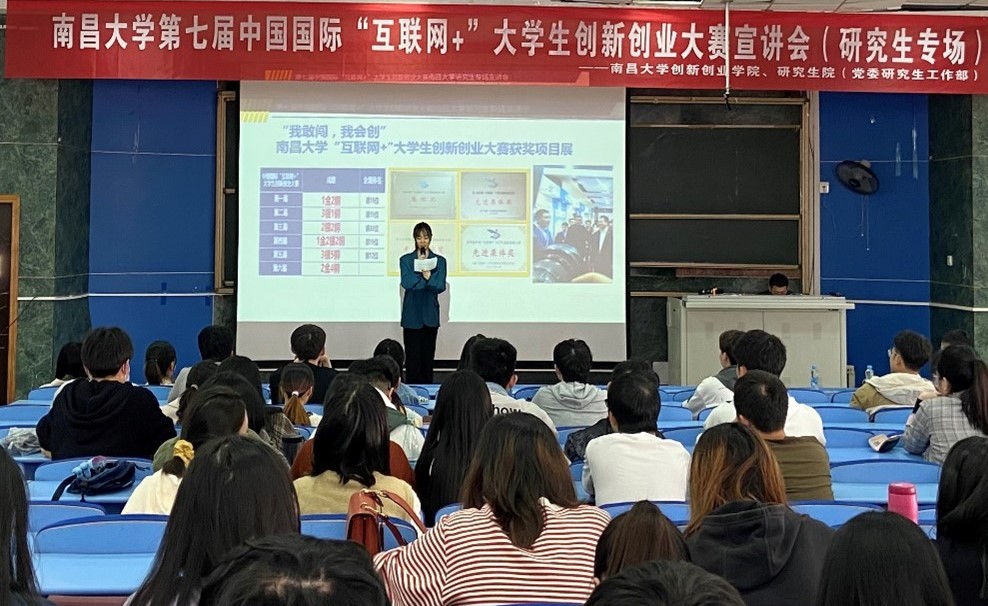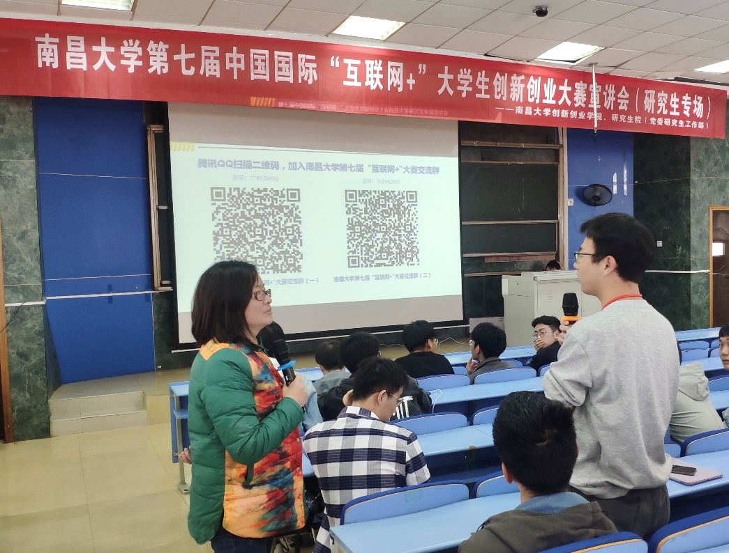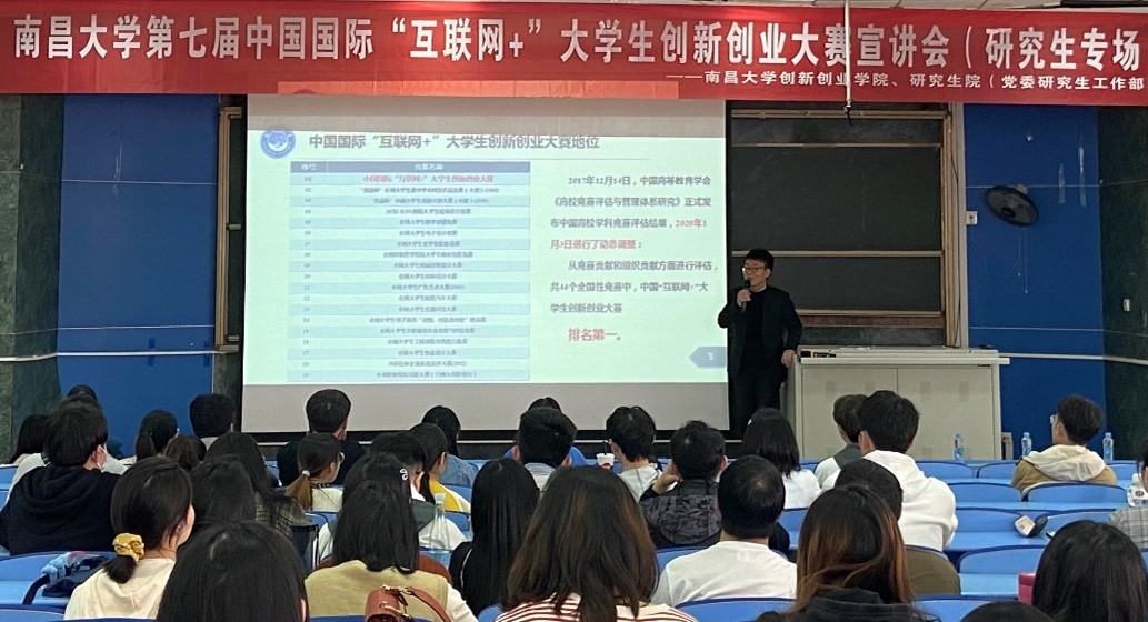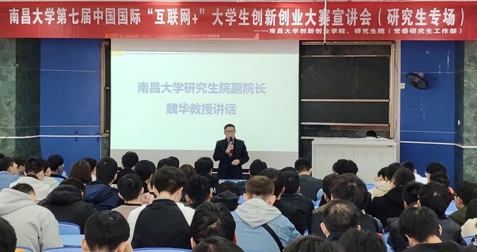 2021年第七届中国国际“互联网+”大学生创新创业大赛定于秋季在我校进行,为推动和落实大赛筹备工作,鼓励我校研究生积极投身大赛,2021年3月25日, “互联网+”创新创业大赛研究生专场宣讲会在环材楼B201举行。据悉,本次宣讲活动共有四场,涉及到理、工、文、医不同学科。 bwin必赢登录入口创新创业学院副院长李志、bwin必赢登录入口副院长魏华、信息工程学院党委副书记罗荣萍和食品学院王允圃老师以及理工一部、理工二部、高研院500余名研究生代表参加了宣讲会。